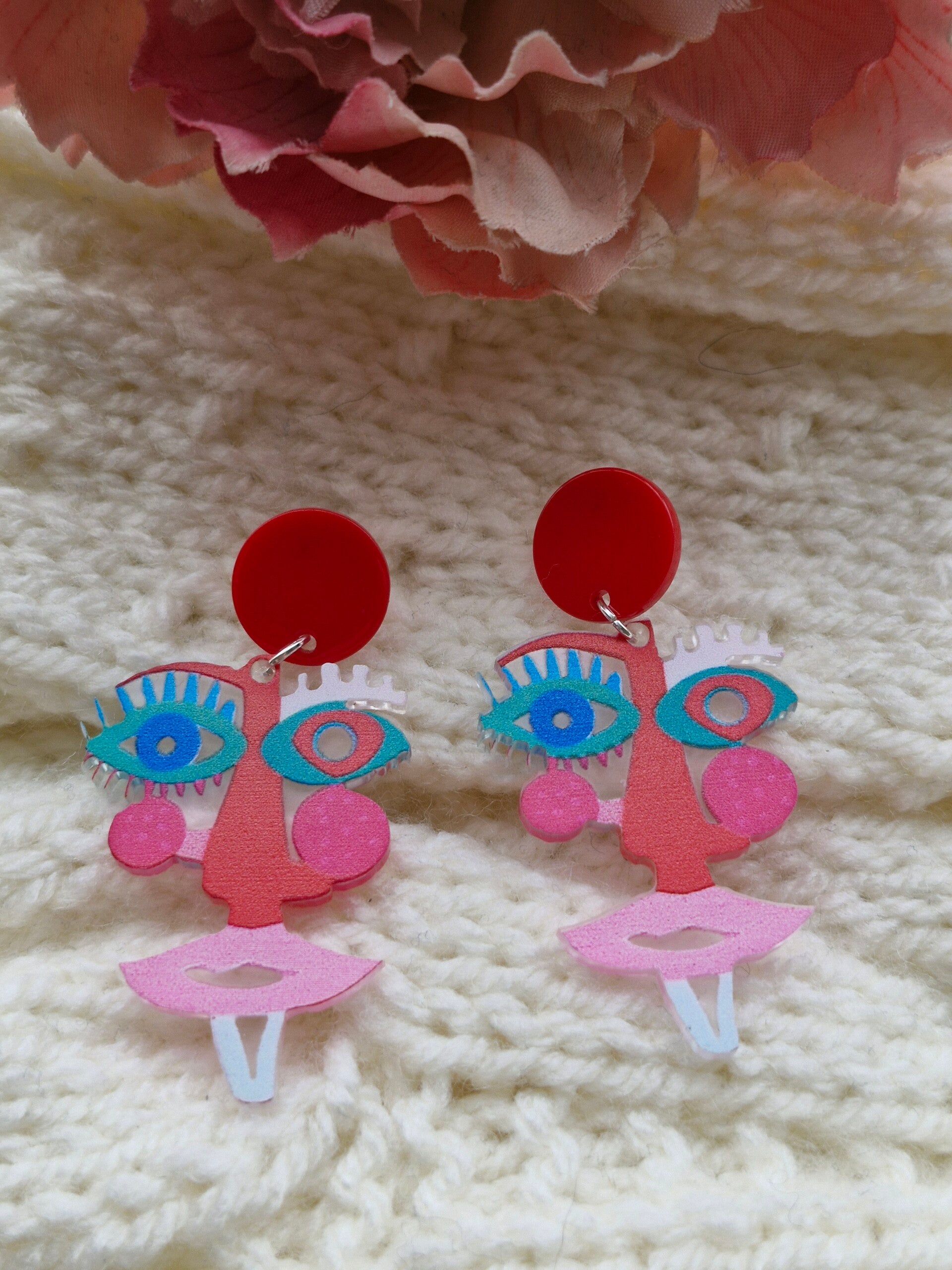 Une paire de boucles d'oreilles rouge rigolotes.